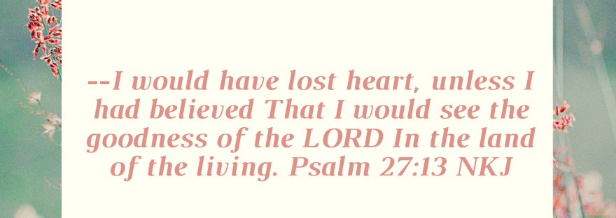 –-I would have lost heart, unless I had believed That I would see the goodness of the LORD In the land of the living. Psalm 27:13 NKJ